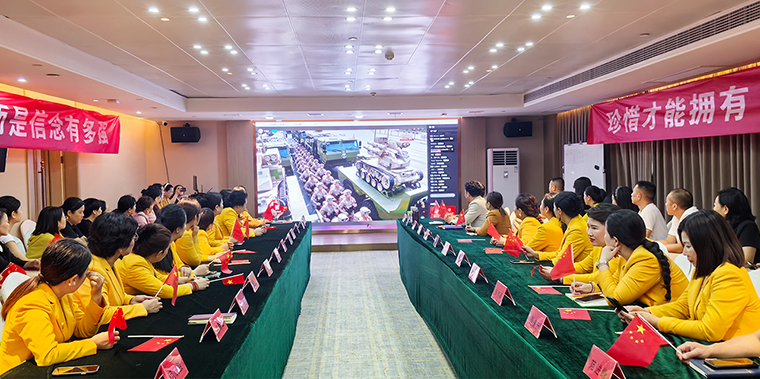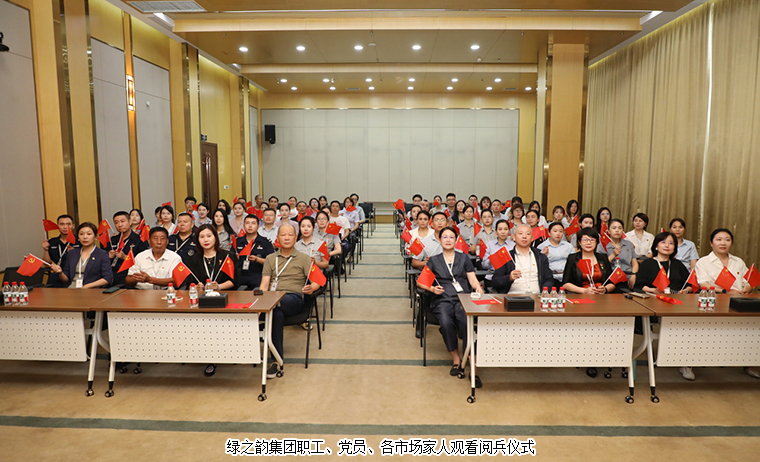 2025年9月3日上午,紀念中國人民抗日戰(zhàn)爭暨世界反法西斯戰(zhàn)爭勝利80周年閱兵式在北京天安門廣場隆重舉行。為深刻銘記中國人民抗日戰(zhàn)爭暨世界反法西斯戰(zhàn)爭勝利的偉大歷史,弘揚愛國主義精神和革命英雄主義傳統(tǒng),進一步增強企業(yè)凝聚力和黨員黨性修養(yǎng),綠之韻集團全體職工、黨員、各市場家人集中觀看了這場盛大閱兵盛典,感受祖國風采,凝聚奮進力量。